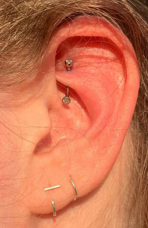 Hi friends! I'm Gem. I began my apprenticeship in 2023 and have continued to work to make every experience safe, comfortable and curated ever since. It is an honor to be able to make clients feel more comfortable in their body one piece of jewelry at a time. I am a queer artist and am dedicated to making sure every person who sits in my chair feels safe, heard and valued. All bodies and visions are welcome in our space. If you're looking for a comfortable and affirming experience, my chair is open to you!